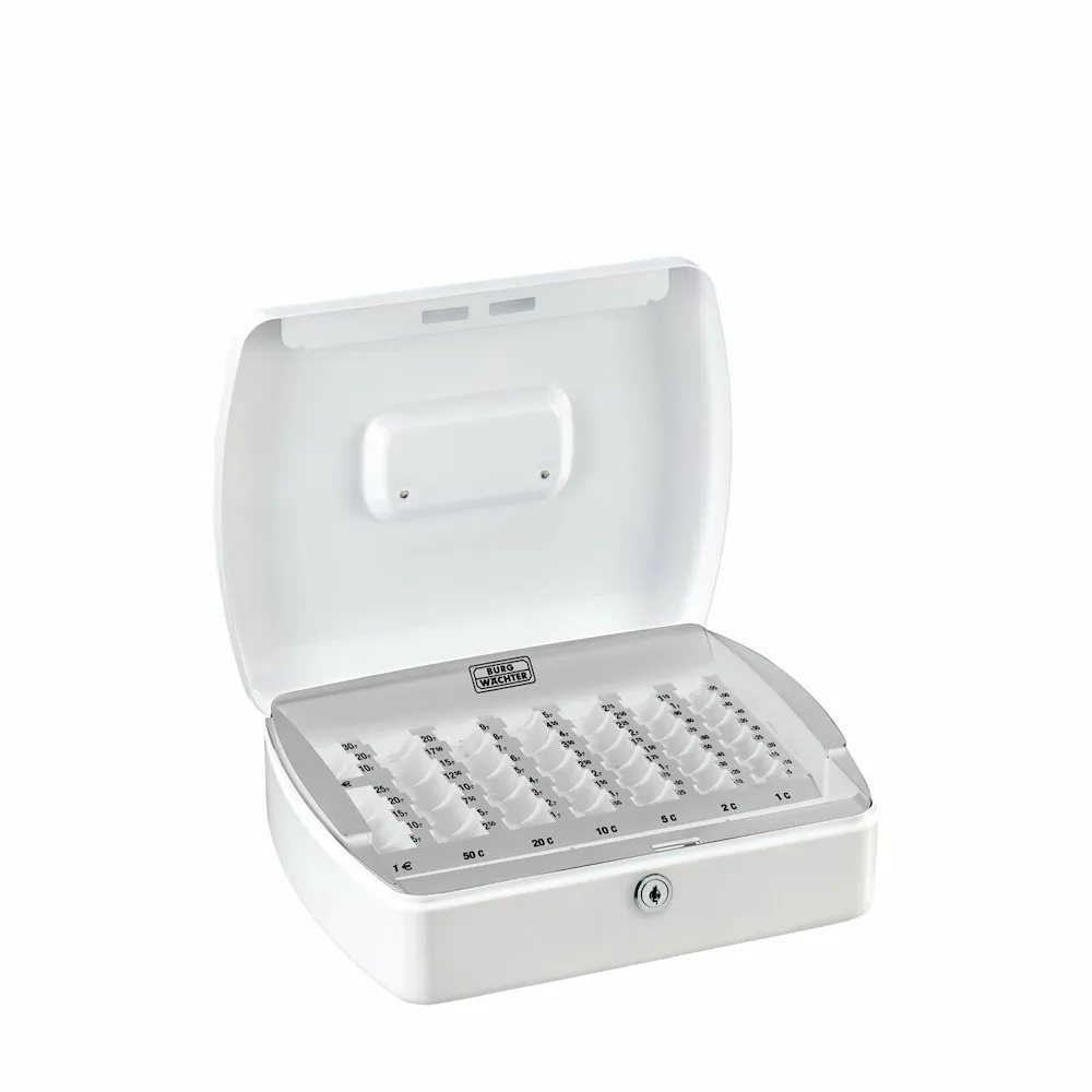 Die BURG-WÄCHTER Geldzähl-Kassette ZK 2257 EURO passt aufgrund der flachen Bauweise hervorragend in Schubladen. Der herausnehmbare Münzeinsatz kann in den geöffneten Deckel hochgestellt werden. Es sind 3 Fächer für Scheine sowie 8 Fächer für Münzen vorhanden. 2 Schlüssel sind im Lieferumfang enthalten.