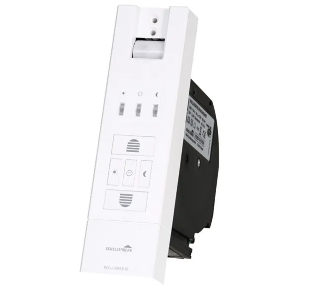 Der Schellenberg RolloDrive 65 Standard ermöglicht die Bedienung eines Rolladens bequem per Knopfdruck oder Zeitautomatik. Der elektrische Gurtwickler ist für Kunststoff-Rolläden bis zu einer Fläche von 6 m² geeignet und kompatibel mit dem Rolladensystem Maxi mit einer Gurtbreite von 23 mm. Er ersetzt einen vorhandenen mechanischen Einlasswickler vollständig. Der RolloDrive 65 Standard kann in alle gängigen Mauerkästen mit einer Öffnungshöhe von mindestens 134 mm verbaut werden und hat Lochabstände von 165 bzw. 185 mm. Er ist ideal auch für Mietobjekte geeignet, da für den Einbau das Öffnen des Rolladenkastens nicht notwendig ist. Die integrierte Zeitautomatik macht es möglich, den Rolladen zu gewünschten Uhrzeiten automatisch hoch- oder herunterfahren zu lassen. Dafür ist jeweils eine Auf- bzw. Abfahrt programmierbar. Blockiert der Rolladen oder trifft er auf ein Hindernis, stoppt der elektrische Gurtwickler automatisch. Große Tasten am RolloDrive 65 Standard erleichtern die Bedienung und die Einstellung der Endlagen. Die Stromversorgung erfolgt über ein Netzkabel, sollte diese unterbrochen werden, bleiben die gespeicherten Endlagen erhalten. Als Erweiterung kann der Rolladen mit einem separat erhältlichen Sonnensensor nach Sonnenstand gesteuert werden. Dadurch können z. B. Einrichtungsgegenstände und Pflanzen vor einer zu hohen Sonneneinstrahlung geschützt werden.