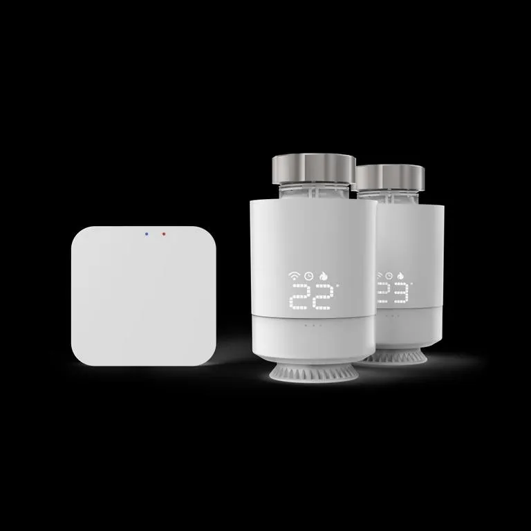 Hama Heizungssteuerung WLAN, 2x smartes Heizkörperthermostat + Zentrale - mit der smarten Heizungssteuerung Heizzyklen programmieren, die zum individuellen Tagesablauf passen und dadurch Energie sparen und Heizkosten senken, z.B. Heizung ausschalten, wenn eine bestimmte Zieltemperatur erreicht ist - so einfach zur smarten Heizungssteuerung: Den bisherigen Heizkörperregler durch den Smart-Home-Heizkörperthermostat austauschen - Heizungsregelung wie Sie sie wollen: Mit der Smart-Home-Heizungssteuerung und automatischen Programmen legen Sie Ihre individuellen Heizszenarien fest komfortabel Heizkosten sparen - Einstellungen spontan ändern: Sie können von überall die smarte Heizungssteuerung nachregeln, z.B. bereits vom Büro die Heizung zuhause aufdrehen, wenn Sie früher Feierabend haben - smart und schlicht: Die kompakte Bauform mit ihrem dezenten Design fügt sich harmonisch und unauffällig in jeden Wohnraum ein - Schritt für Schritt zum Smart Home: Mit der Hama Smart Home-App können Sie Ihr smartes Zuhause um beliebig viele Hama Smart-Home-Produkte erweitern und vernetzen - ob Zuhause oder im Zug: Mit der Hama Smart Home-App und den Smart-Home-Heizkörperthermostaten haben Sie von überall und jederzeit die Kontrolle über Ihre Heizung - ob Amazon Alexa oder Google Assistant: Per Sprachsteuerung komfortabel verschiedenste Heizszenarien über die smarten Thermostate steuern - einfaches Setup: innerhalb von wenigen Minuten eingerichtet - Starter-Set mit Smart-Zentrale: Schaltzentrale, um die Smart-Home-Heizkörperthermostate per WLAN in Ihr Netzwerk einzubinden und anzusteuern - hohe Kompatibilität: funktioniert mit Amazon Alexa, Google Assistant, Siri Shortcuts, iOS und Android, zudem lassen sich alle mit Alexa- und Google-Assistant-kompatiblen Smart-Home-Produkte anderer Hersteller verknüpfen - mit beiliegendem Adapter (für Danfoss RA, RAV, Caleffi, Giacomini) auf alle gängigen Heizkörper montierbar - einfacher Start: Smarte Thermostate eignen sich ideal, um Wohnung oder Haus intelligent nachzurüsten, aber auch zur Unterstützung von Menschen mit körperlichen Beeinträchtigungen - frei definierbare Programme und unterschiedliche Modi bieten viele Möglichkeiten der Steuerung und Automation, z.B. während der Arbeitszeit Temperatur senken - Starter-Set kann um beliebig viele smarte Heizungsregler erweitert werden - mit Ihren ins WLAN eingebundenen Geräten Gruppen erstellen oder Szenen erschaffen: z.B. in Kombination mit einem Fensterkontakt beim Öffnen der Fenster sofort Temperatur absenken - mit Auswärts-Modus, Frostschutzautomatik, Ventilschutzfunktion gegen Verkalken, Fenster-auf-Erkennung - verstecktes LED-Display wird nur während der Bedienung sichtbar, gewohnte Bedienung mittels Drehregler - Ihre Daten werden ausschließlich auf deutschen Servern gelagert Systemvoraussetzungen: - Betriebssystem: Android 6 und iOS 11.0 oder höher Verbraucherhinweis: Amazon Alexa: Dazu muss der sogenannte Alexa-Skill ''Hama Smart Home'' in der Alexa-App aktiviert werden. Hier wird dann das Benutzerkonto der Hama Smart Home-App mit Alexa verbunden. Das ermöglicht, die Geräte per Sprachsteuerung zu steuern (Ein-/Ausschalten). Google Assistant: Dazu muss der ''Hama Smart Home''-Dienst in der Google Home App aktiviert werden. Hier wird dann das Benutzerkonto der Hama Smart Home-App mit Google verbunden. Das ermöglicht, die Geräte per Sprachsteuerung zu steuern (Ein-/Ausschalten). Technische Eigenschaften: - Farbe: Weiß - Farbton: Weiß - Signalübertragung: WiFi/Zigbee - Sprachsteuerung: Amazon Alexa/Apple Siri (Shortcuts)/Google Home - Steuerung von: Heizkörpern Lieferumfang: - 2 Smart-Home-Heizkörperthermostate - 4 Batterien AA Mignon - 1 Zentrale - 2 Adapter-Sets - 1 Netzteil mit Micro-USB-Kabel - 1 Kurzbedienungsanleitung