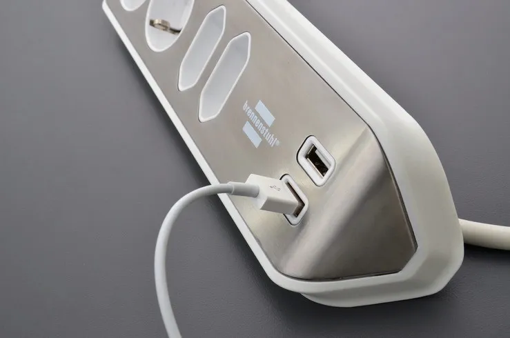 Eckstedoleiste 4fach ws/alu estilo® 2xSchuko,2xEuro,2xUSB