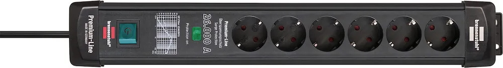 6er Schutzkontakt-Steckdosenleiste mit Schutz vor Überspannung und 1,8m Kabellänge H05VV-F 3G1,5, Steckerleiste mit erhöhtem Berührungsschutz - sorgt für noch mehr Sicherheit in Innenbereichen, die Mehrfachsteckdose zur Wandmontage schützt wertvolle Geräte vor Überspannungen mit einem max. Ableitstrom bis zu 26.000A, Überspannungsschutz-Mehrfachsteckdose mit beleuchtetem Sicherheitsschalter zum Ein- und Ausschalten (zweipolig), Mehrfachsteckdosenleisten mit Überspannungsschutz können Spannungsspitzen reduzieren, sodass die angeschlossenen Geräte nicht beschädigt werden, Made in Germany