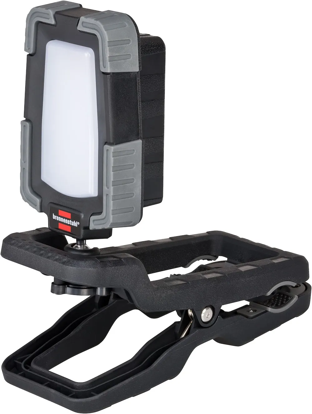 LED Arbeitsleuchte mit Klemmvorrichtung für mehr Flexibilität und Funktionen, dank einer Klemmbreite bis zu 55mm - für den Arbeitseinsatz von Heim- und Handwerkern, in Werkstätten oder auf Montage, IP65, einfache und individuelle Ausrichtung des Arbeitslichts dank Kugellager - der Neigungswinkel des Arbeitslichts ist in alle Richtungen um nahezu 360° flexibel einstellbar, LED Arbeitsscheinwerfer mit 3 Schaltstufen (100% - 50% - 25%) für eine Leuchtdauer bis zu 12h und integrierter USB Powerbank zum Aufladen von Geräten mit USB Ladekabel wie Smartphones, Tablets, etc., robuster LED Baustrahler 10W mit bruch- und schlagfestem Gehäuse - mit integriertem Li-ion Akku (3,7 V/2,5 Ah), Ladeanzeige und USB Labekabel Typ A/C, Lieferumfang : 1 x Mobiler LED Akku Arbeitsstrahler CL 1050 MA 10W (950lm) inkl Li-Ion Akku (3,7 V/2,5 Ah), 1 x USB Kabel Typ A/C - in bester Qualität von brennenstuhl®