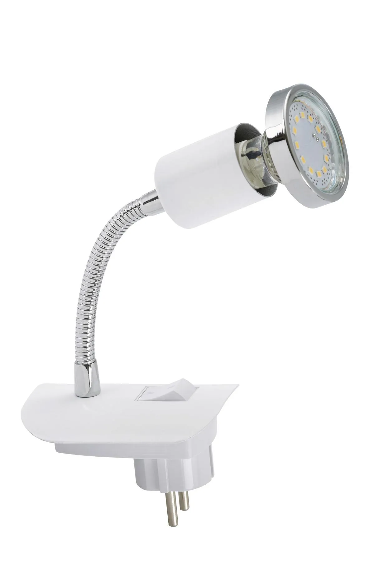 LED Steckerleuchte, 1-flammig ''CLIP'' Metall / weiß inkl. 1 x LED/GU10 2,9W 260lm 3.000K Lebensdauer 25.000 h, Ra>=80, nicht dimmbar, inkl. EIN/AUS-Schalter, inkl. Flexarm IP20 170x65x120mm (LxBxA)