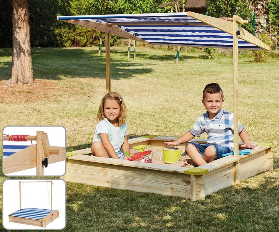 Sandkasten mit Kurbeldach ca. 118x118x118cm