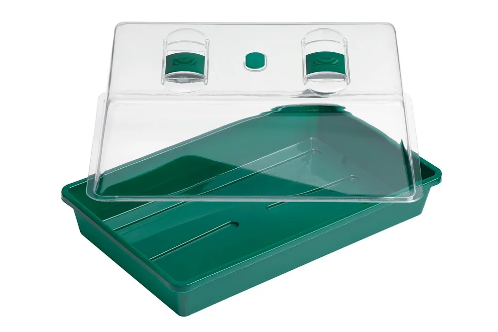 Wasserdichte Wanne und glasklare Abdeckhaube aus stabilem Kunststoff'' Durch die Erwärmung zwischen Wanne und Deckel verdunstet Wasser'' Ideale Bedingung zur Jungpflanzenanzucht durch Treibhauseffekt'' Mit verstellbaren Lüftungsklappen'' Maße 38 x 24 x 18 cm