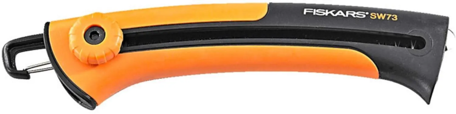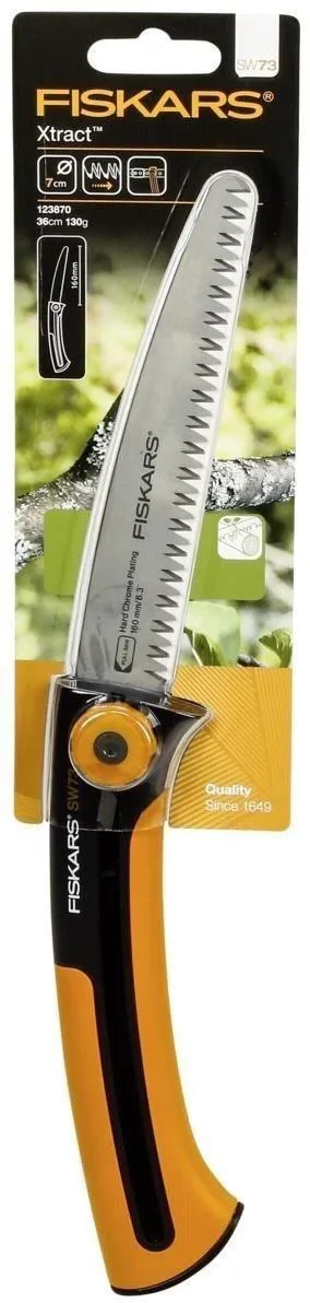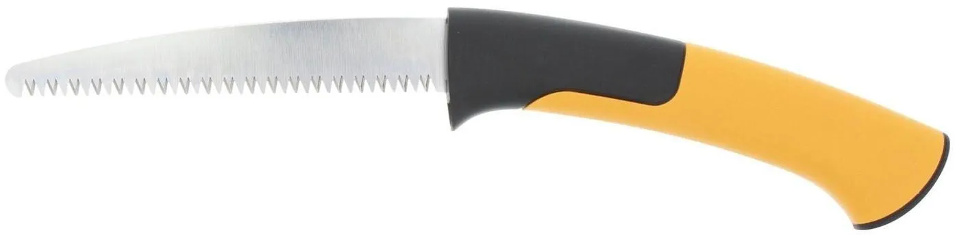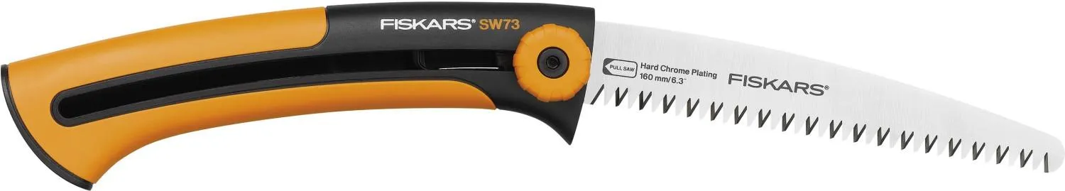 Fiskars Handsäge für frisches Holz, Grobzahnung, Sägeblattlänge: 16 cm, Einziehbar, Rostfreies Stahl-Sägeblatt, Schwarz/Orange, Xtract, SW73, 1000613