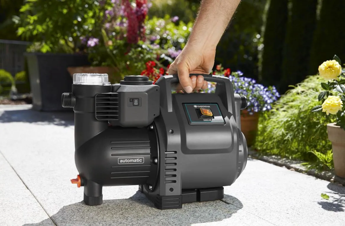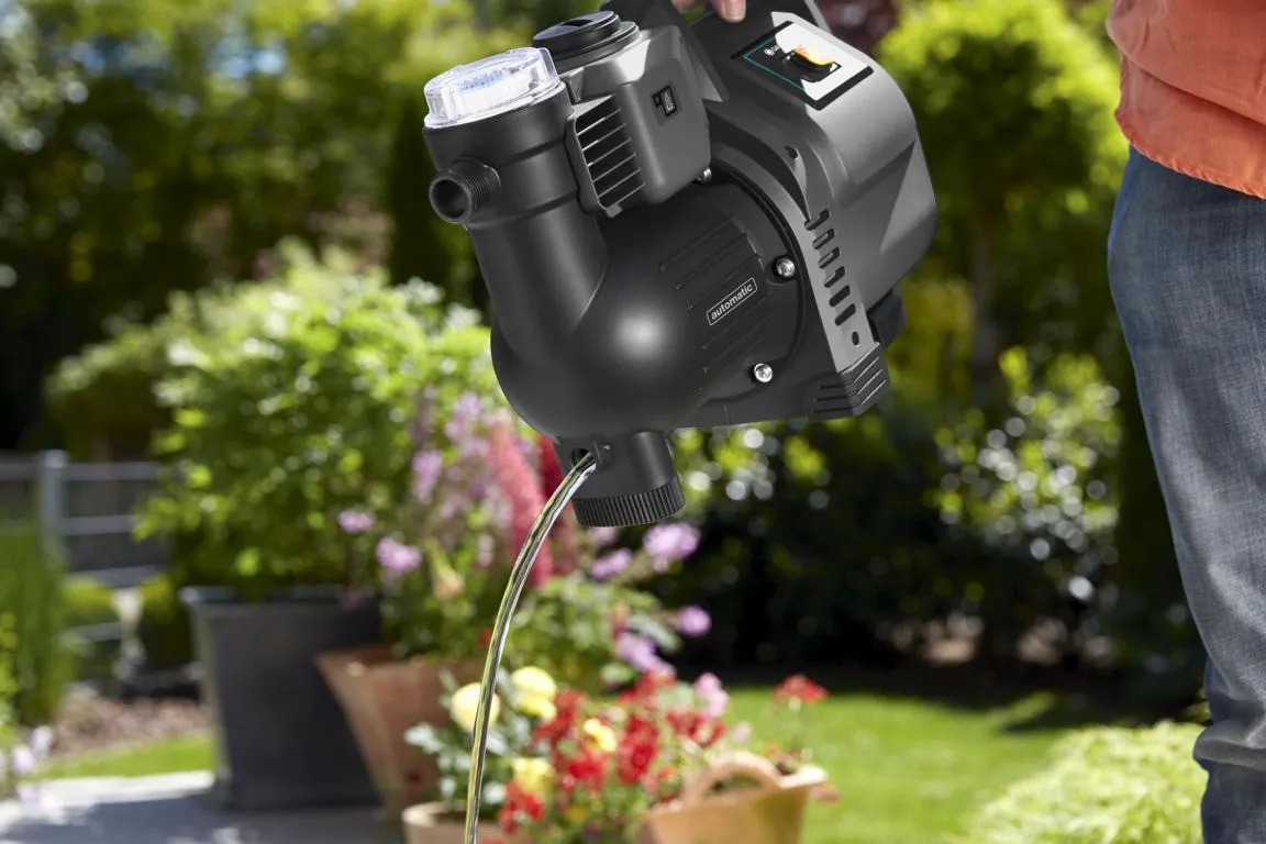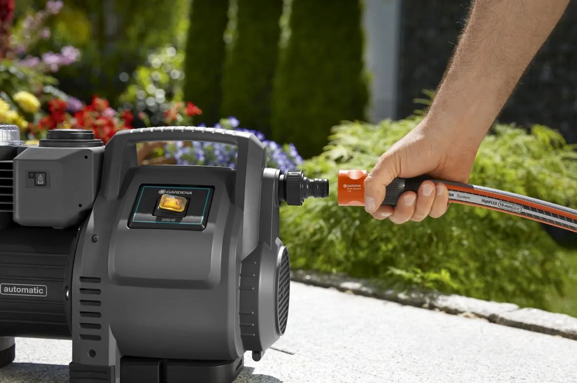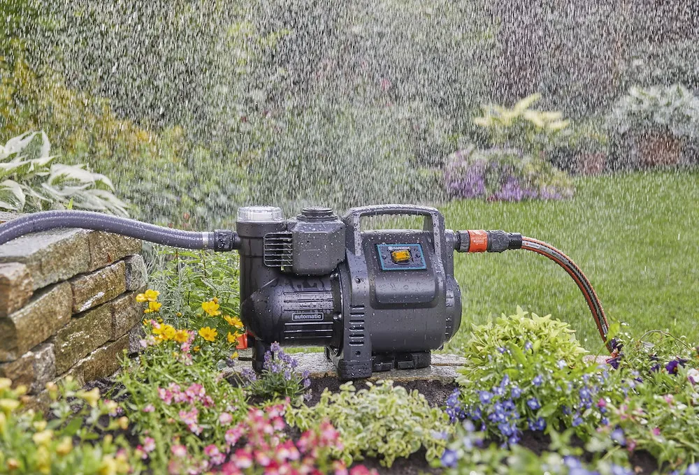 Der in Deutschland entwickelte GARDENA Haus- & Gartenautomat 3500/4 kann für die Wasserversorgung im Haus, für beispielsweise die Toilettenspülung und die Waschmaschine eingesetzt werden. Aber auch die Verwendung als Gartenpumpe ist möglich. Durch das wetterfeste Gehäuse kann die Pumpe unbeschadet die ganze Freiluftsaison über draußen stehen. Die integrierte Elektronik aktiviert den Haus- & Gartenautomaten vollautomatisch bei Wasserbedarf und schaltet ihn danach wieder aus. Er ist mit einer Jetpumpe ausgestattet, die das Wasser geräuscharm fördert. Durch die Rückschlagventil-Technik ist ein schnelles Ansaugen garantiert. Der optimierte Ansaugprozess sorgt dafür, dass Wasser in wenigen Sekunden aus bis zu sieben Meter Tiefe gepumpt werden kann. Das Kleinmengenproramm sichert auch bei geringen Fördermengen eine problemlose Anwendung. Integrierte Trockenlaufsicherung. Der Haus- & Gartenautomat verfügt über ein Fehlerdiagnosesystem. Kleinste Störungen, beispielsweise ausgelöst durch tropfende Wasserhähne oder saugseitige Probleme, werden über verschiedene Blinkfrequenzen per LED-Blinklicht angezeigt. Ein Tragegriff am Gerät ermöglicht einen leichten Transport.