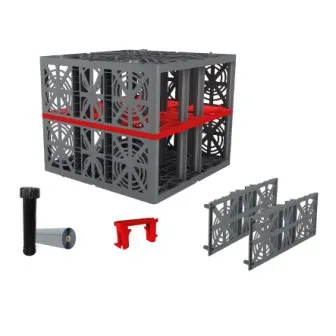 Speziell für die Rückhaltung oder Versickerung von Regenwasser entwickelte Füllkörperrigole zur kontrollierten Ableitung des Regenwassers in das Grundwasser. EcoBloc Inspect Komplettset zur Verlegung im Blockverbund (Verlegevariante B). LKW-befahrbar bei 80 - 200 cm Erdüberdeckung (SLW 60).