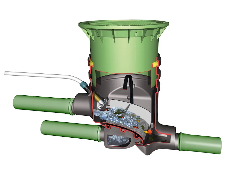 Selbstreinigender externer Filter zur Reinigung des Regenwassers vor dem Tank Über 95 % Wasserausbeute Wartungsarm, da selbstreinigend Stufenlose Einbautiefe von 580 - 1050 mm durch Teleskop-Domschacht Abgedichtet bis Geländeoberkante Geringer Höhenverlust (200 mm) zwischen Zu- und Ablauf Maximal 350 m² Dachfläche bei Anschlüssen DN110 und 750 m² bei DN160 In begehbarer und PKW-befahrbarer Ausführung erhältlich Filtereinsatz: Durch ein dreilagiges Filterprinzip ergibt sich ein optimaler Wirkungsgrad (95 %) Extrem glatte Oberfläche, dadurch max. Selbstreinigung Maschenweite 0,35 mm Optional mit Reinigungseinheit Extern