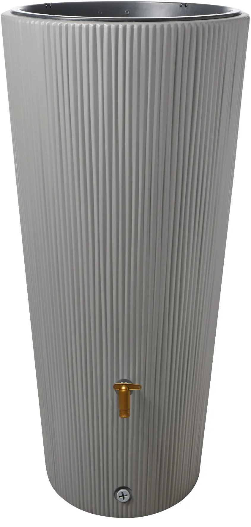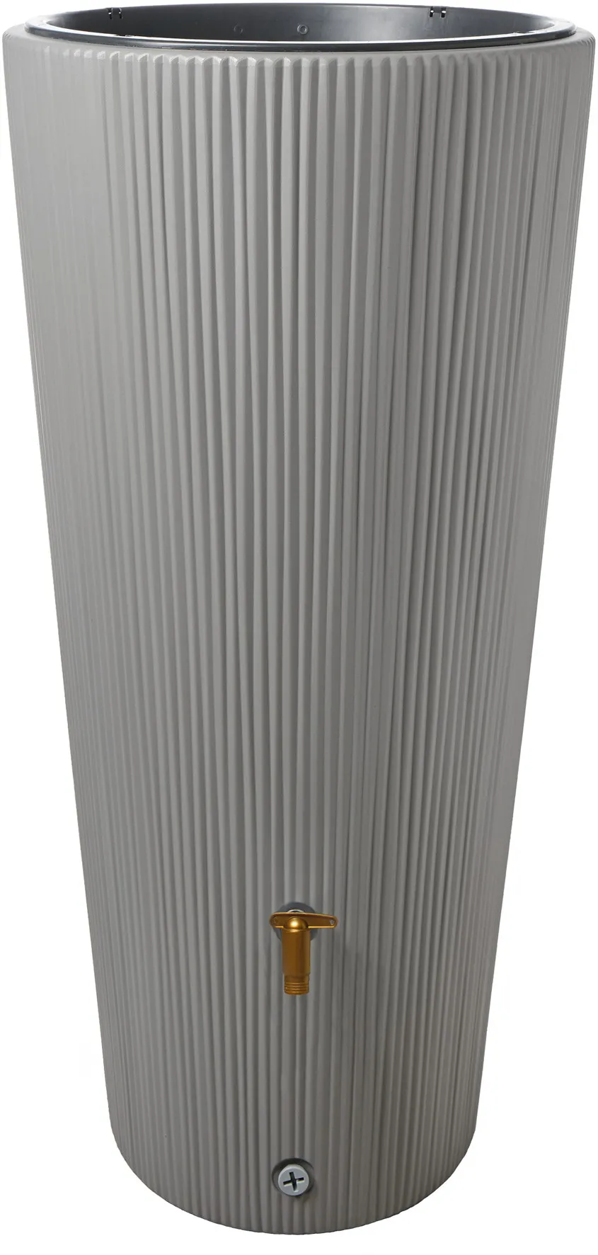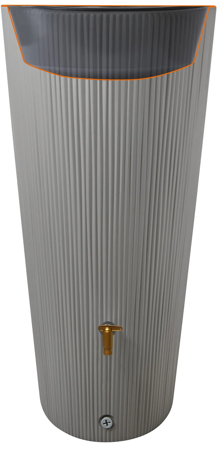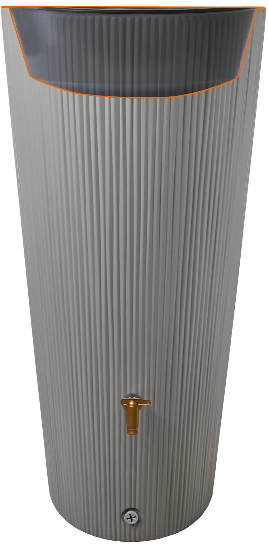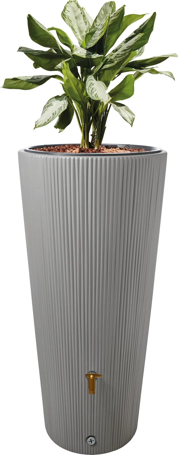 Der stylische und moderne Regenwasserbehälter Funktionen: Regenwassernutzung und Deko Regenwasserspeicher mit integrierter Pflanzschale und Filtervlies Die Pflanzschale mit einer Tiefe von 200 mm ermöglicht eine individuelle Gestaltung Mit zwei Gewindeanschlüssen 19 mm (¾'') zur Wasserentnahme: Für den Auslaufhahn und das Universal-Schlauchset (Zubehör) oder einfach zur Restentleerung vor der Frostperiode Hergestellt aus 100% Recyclingmaterial Lieferumfang: Vaso 2in1 Decor zinkgrau, Kunststoff-Auslaufhahn Aqua-Quick, Pflanzschale mit Filtervlies