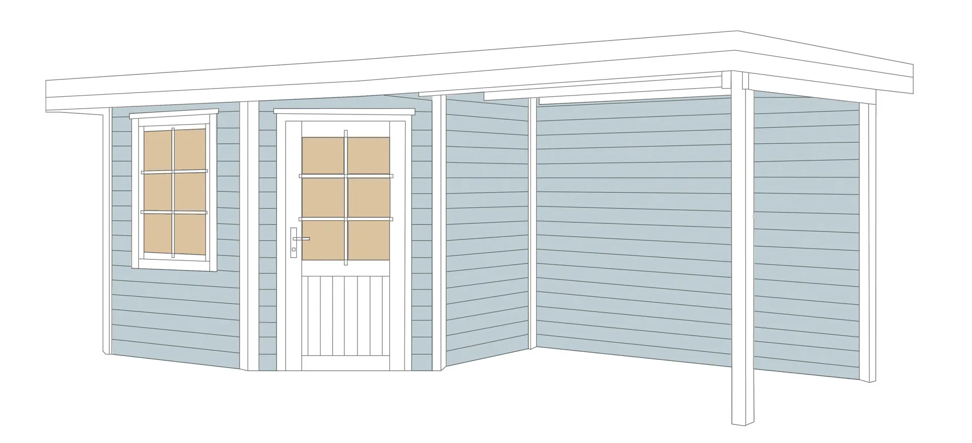 Das WEKA Designhaus 213 B+ versprüht mit seiner modernen 5-Eck-Bauweise besonderes Flair in Ihrem Garten. Optimale Stabilität und Qualität erhält es durch 28 mm starke Wände, den 19 mm starken Massivholzboden und das 19 mm starke Massivholz-Flachdach. Es ist aus nordischem Fichtenholz gefertigt, 298 cm breit, 298 cm tief und mit 325 cm Anbau. Ein großes Fenster und die extrahohe Rahmen-Einzeltür mit platzsparendem Eckeinstieg sind in Ihrem Bausatz inklusive. Verbringen Sie gemütliche Stunden mit dem Designhaus 213 B+ oder nutzen Sie es in den Wintermonaten, um Ihre Gartenmöbel und Gartenutensilien unterzustellen.Gartenhaus in stabiler Blockbohlenbauweise, Farbe außen: grau, 28 mm Wandstärke, mit 19 mm Massivholzdach und Massivholzboden (Haus), Dachüberstände: Seiten je ca. 20 cm, vorn 30 cm, hinten 10 cm Bemaßung: Gesamthöhe 259 cm, Seitenwandhöhe 248,5 cm Einzeltür (lichtes Maß Türöffnung): B 81 cm x H 194 cmAusstattung: 1 großes Fenster, Anbau 300 cm , ohne Dachbelag. Aufgrund der speziellen Dachkonstruktion ist eine Eindeckung mit Bitumen-Dachschindeln nicht empfehlenswert.