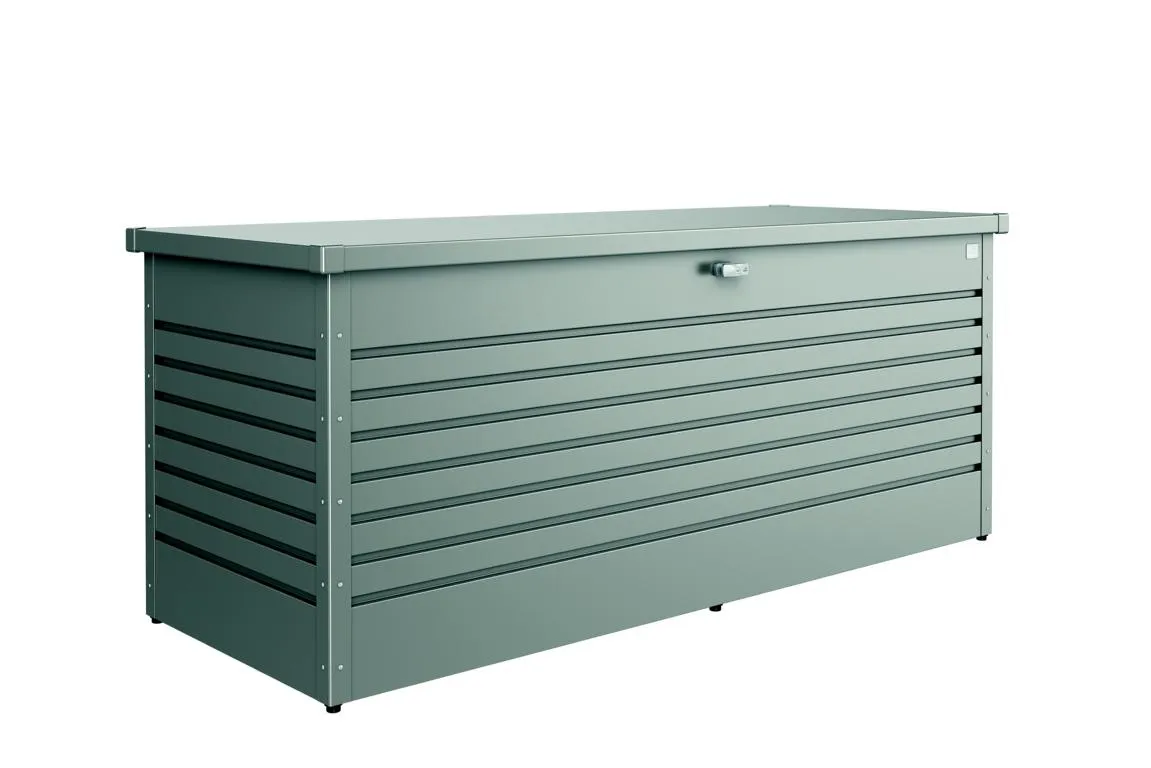 Die Gartenbox steckt locker all das weg, wofür Sie keinen geeigneten Aufbewahrungsort haben. Ideal zum Verstauen von Sitzkissen, Sonnenliegen, Klappstühlen, Spielzeug, Sport- und Campingutensilien. Die ideale Aufbewahrungsbox für allerlei Krimskrams im Freien! Durch hochwertige Materialien eine dauerhafte Lösung.