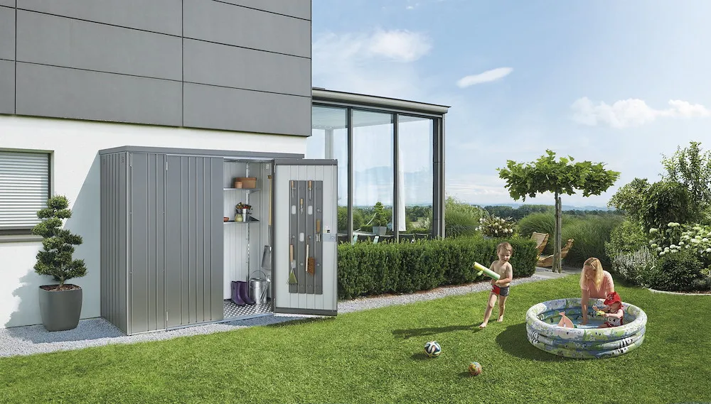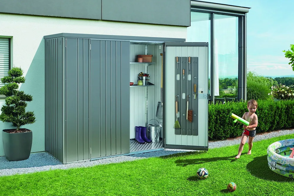 Wo Raum knapp ist, zeigt er seine Klasse. Im Garten, auf der Terrasse, in der Garage oder auf dem Balkon behütet und ordnet er, ohne Ihren Lebensraum einzuschränken. Mit dem Biohort-Geräteschrank können Sie Gartengeräte, Griller, Gartenmöbel u.ä. regenwassergeschützt und diebstahlsicher verstauen. Er fügt sich - durch die kompakte Größe und dank seines eleganten Designs - harmonisch in seinen Standort ein.