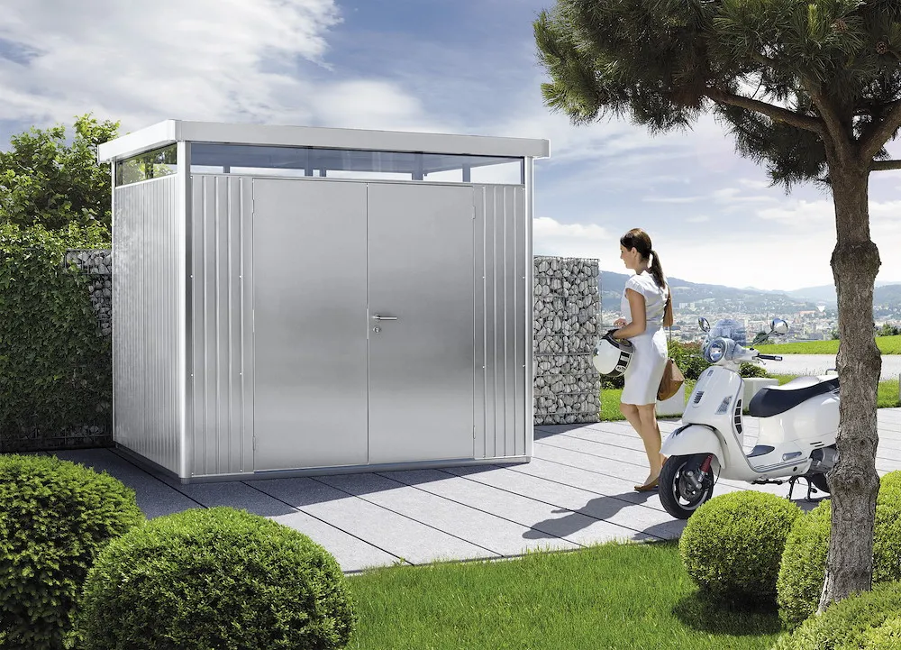 Für alle, die hinsichtlich Qualität und Design das Beste suchen das von Industriedesignern entworfene Top-Produkt von Biohort. Das moderne Flachdach und die integrierte Rundum-Oberlichte machen das HighLine® zu einer Augenweide. Für die optimale Sicherheit sorgt die 3-fach Verriegelung mit Zylinderschloss. Der Türflügel wird mittels Gasdruckfeder halbautomatisch geöffnet und geschlossen. Das Gerätehaus HighLine® ist absolut wartungsfrei.