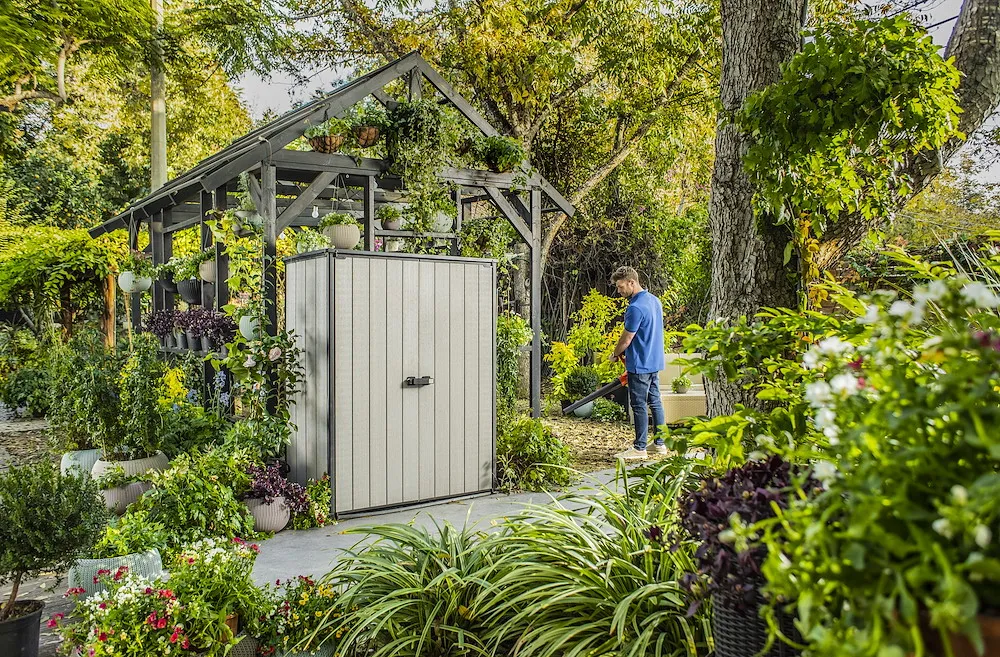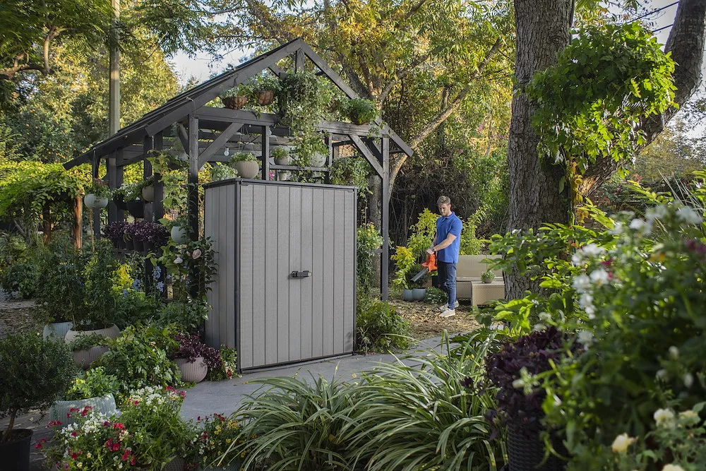 - aus hochwertigem DUOTECH'' Material - verbindet Holz-Ästhetik mit einer hohen Beständigkeit - wetter- und UV-beständig - Nutzinhalt ca. 1400 Liter - 2 Türen - natürliche raue Holzoptik - streichbare Oberfläche - inklusive 2 Regalbretter - abschließbar (Schloss nicht im Lieferumfang enthalten) - einfache Montage durch Nut- und Feder-Paneele - für den Außenbereich geeignet