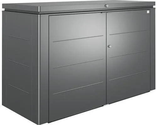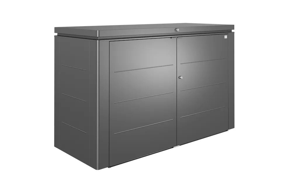 Die Einsatzmöglichkeiten des HighBoard sind dank Flügeltüren und Deckelöffnung vielfältig: ob als Stauraum für Kissen, Gartenutensilien oder als ideale Ergänzung zu Ihrer Outdoor-Küche - alles ist witterungsgeschützt und ordentlich verstaut. Die edle Optik wurde von Industriedesignern entworfen und ist garantiert ein Highlight auf jeder Terrasse. Vorzüge: regenwasserdicht, unsichtbare, integrierte Durchlüftung, Deckel aus beschichtetem Aluminium.