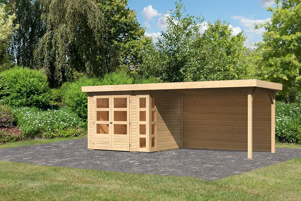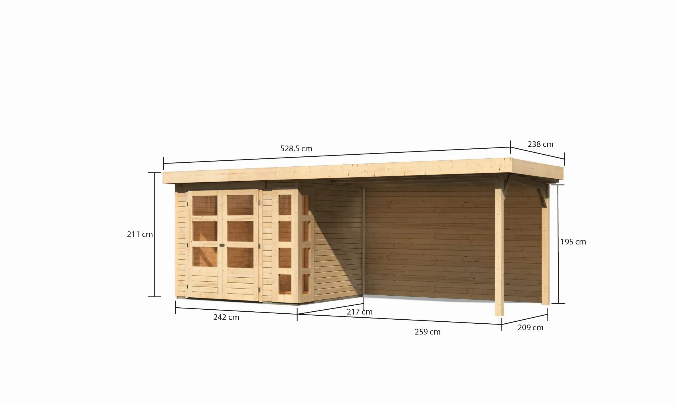 SH Kerko 3 natur 242x217x211cm mit Anbaudach 2,80m + Rückwand