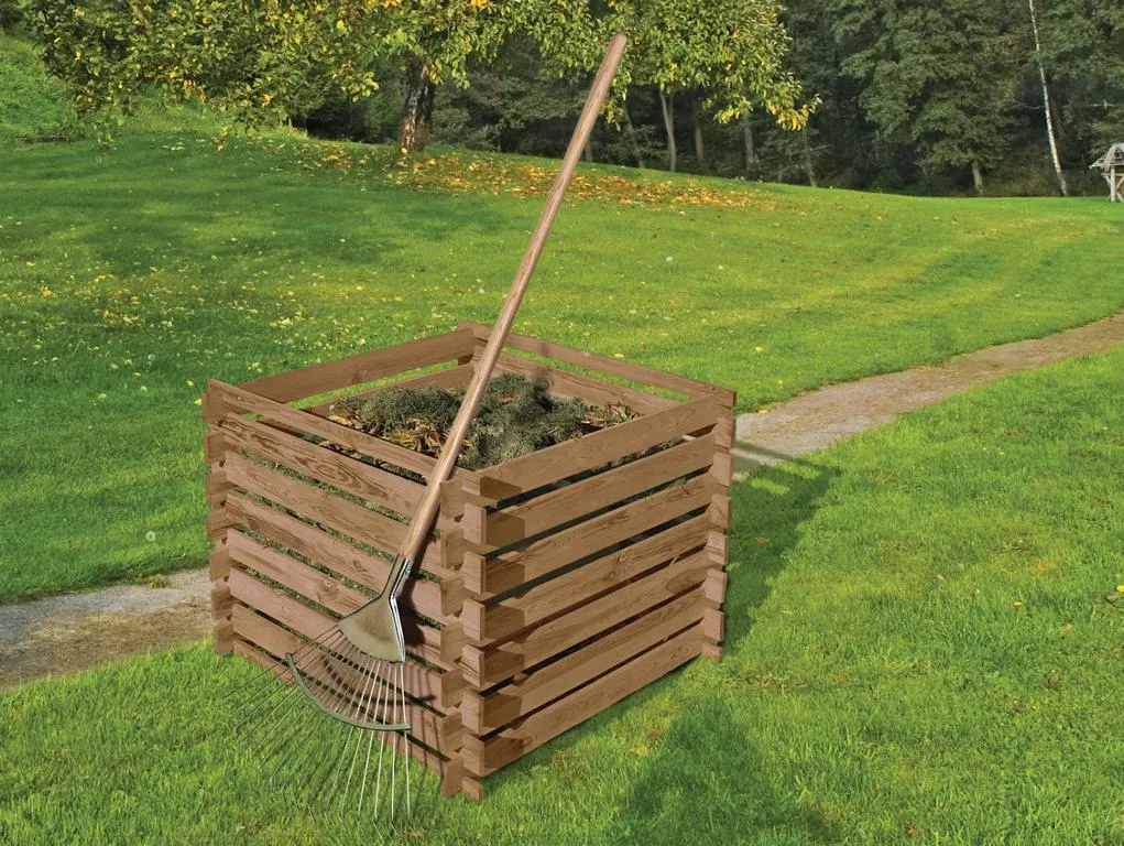 Stecksystem, aus sägerauen Brettern, kesseldruckimprägniert braun, Maße: B 90 x T 90 x H 70 cm, (o. Laubbesen)