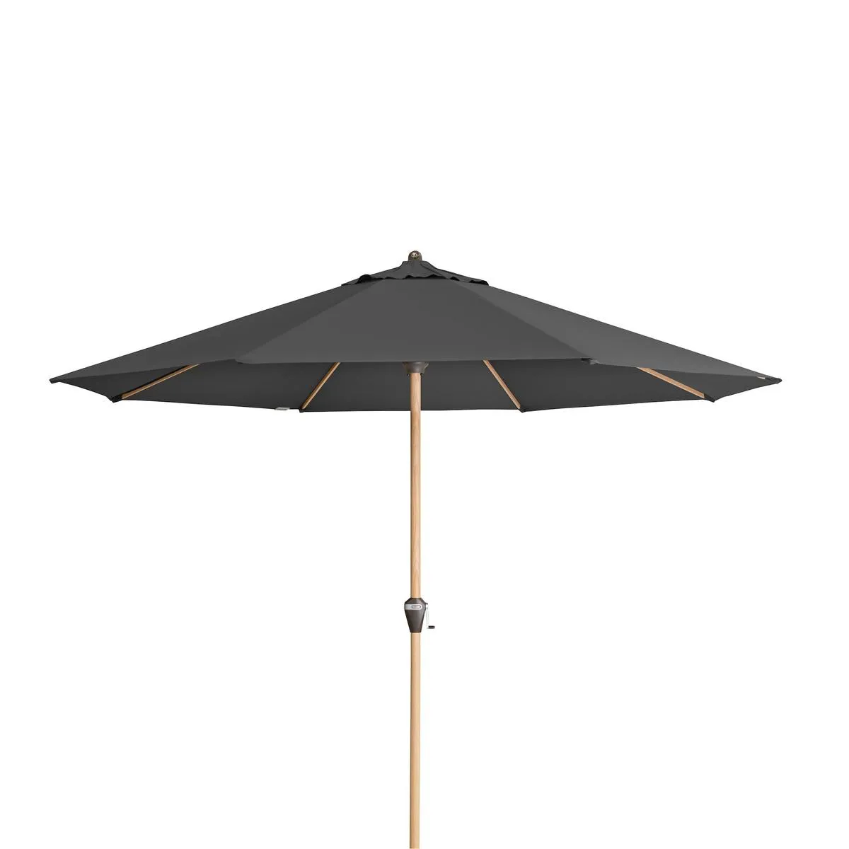 Aluminium-Gestell, Eschenholz-Optik, mit Kurbel, Polyester-Bezug: anthrazit, abnehmbar, ? 350 cm, UV-Schutz 80+