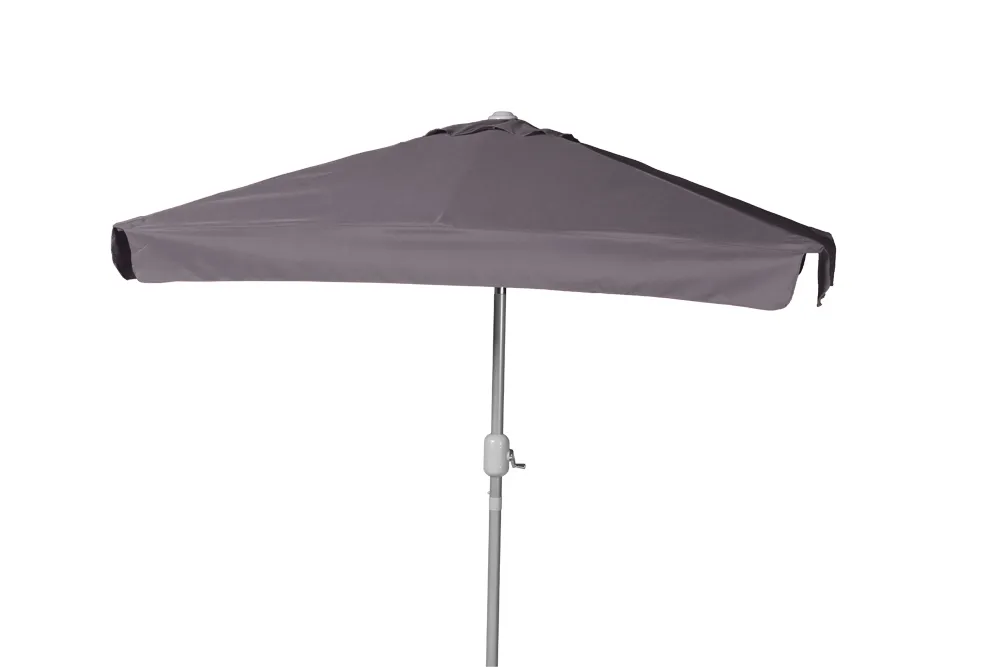 Der graue Sonnenschirm mit den Maßen von 160 x 230 cm ist ideal für Ihren Garten oder Ihre Terrasse. Der Sonnenschirm verfügt über 6 Spanten und einem ca. 237 cm Stock. Die Ø 38 mm breite Führungsbuchse ist aus Kunststoff gefertigt. Der Stoff verfügt über einen UV Schutz von 50+. Der Schirm ist abknickbar, mit Kurbel und Volant. Im oberen Bereich verfügt der Schirm über eine Notentlüftung. Der Schirm besteht aus Aluminium und einen Polyesterbezug.