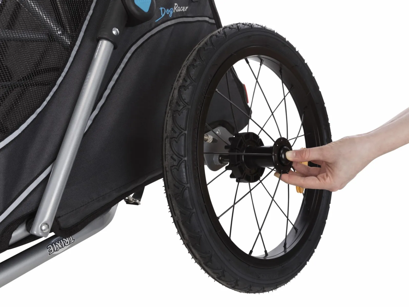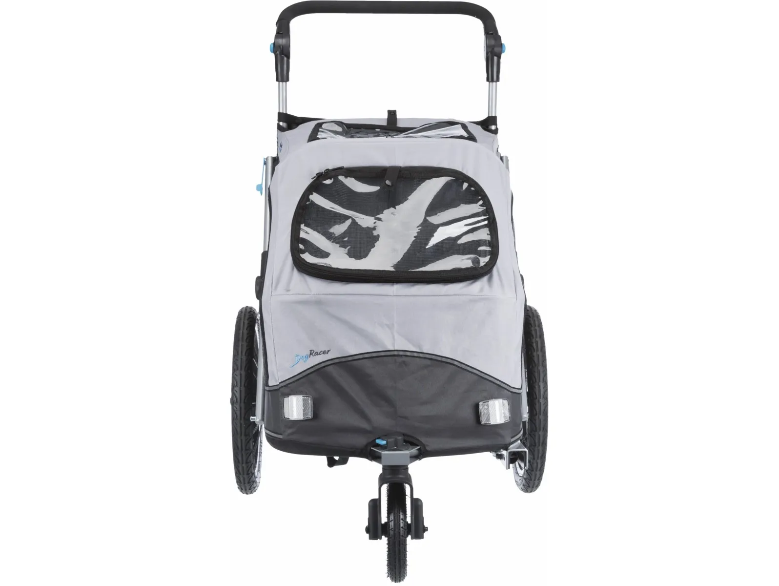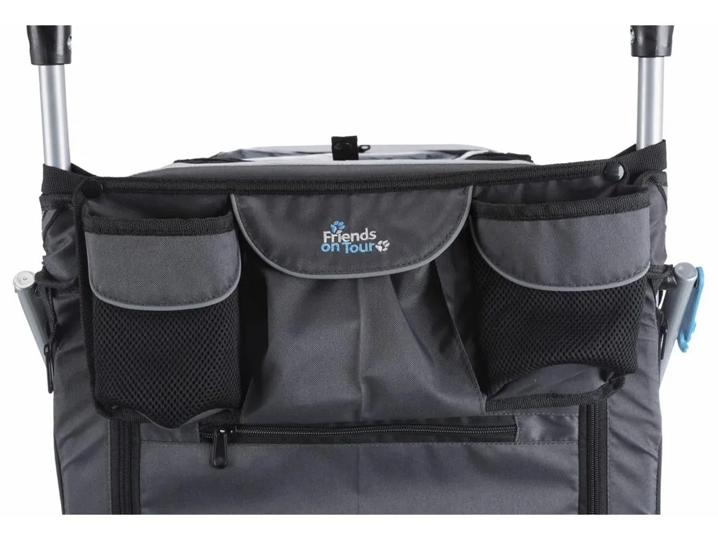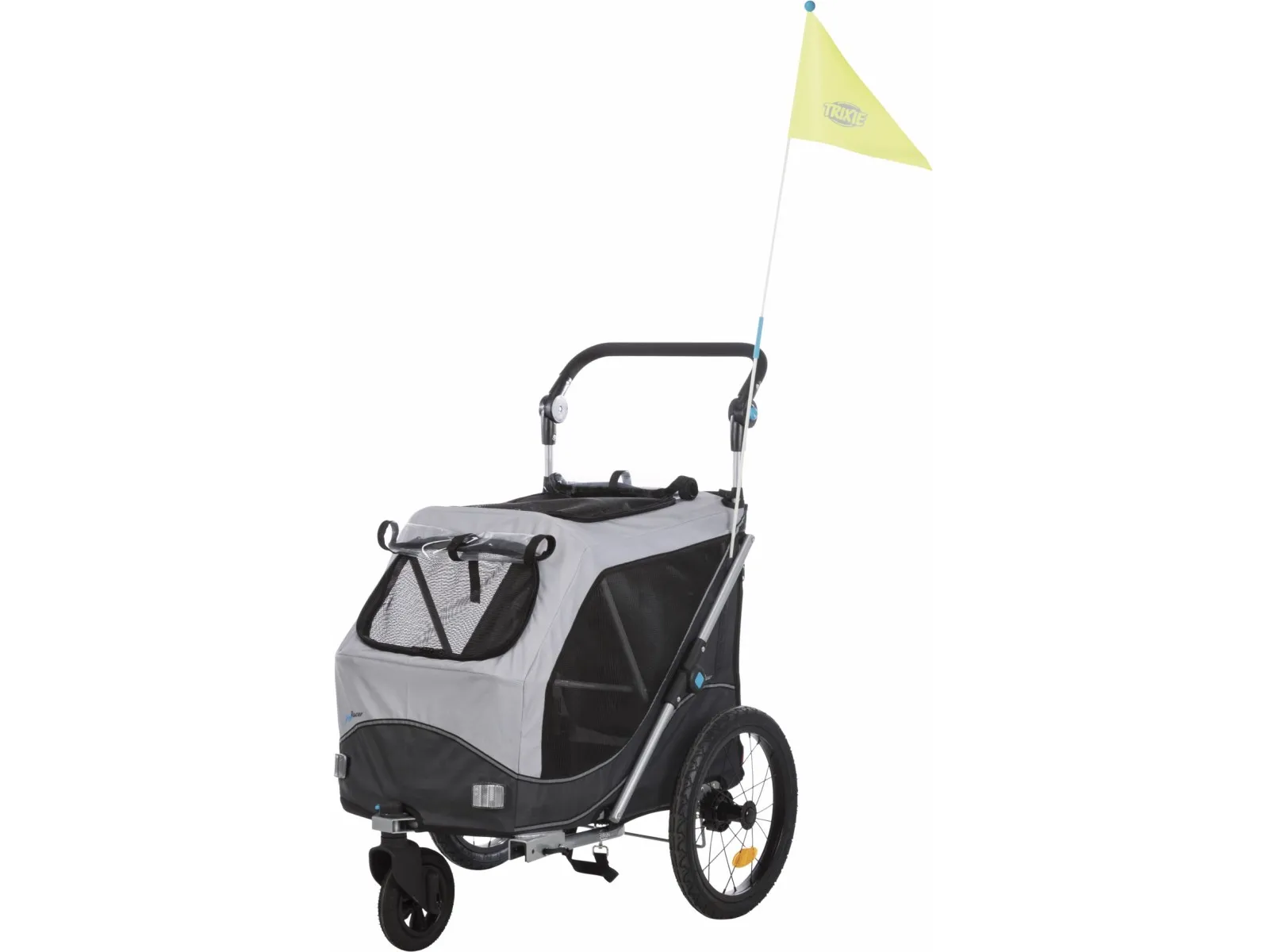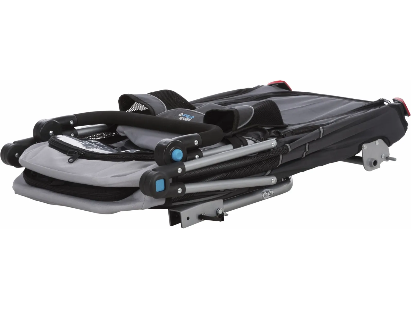sekundenschneller Auf- und Abbau dank Schnell-Falt-Funktion Räder mit Schnellbefestigungssystem oberer und vorderer Netz-Einsatz mit Regenschutz abdeckbar mit Hecktür Kissen mit viscoelastischem Schaum herausnehmbare Bodenplatte mit Anti-Rutsch-Bezug mit integrierter Kurzleine mit diversen Taschen und Getränkehaltern mit beidseitiger Feststellbremse reflektierende Elemente Signalwimpel mit reflektierendem Motiv inklusive Anhängerkupplung durch Schnell-Click-Funktion einfacher Umbau zum Jogger möglich mit höhenverstellbarem Griff Frontrad zum Jogger-Umbau separat erhältlich (Artikel 12795) rostfreier Stahl, Polyester-Bezug Farbe: grau/schwarz tierschutzkonform nach § 18 (AT)