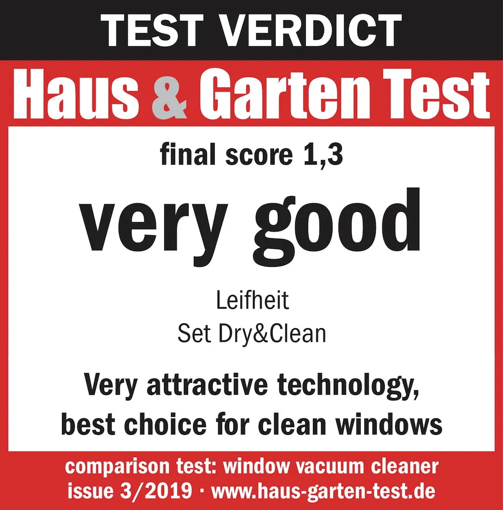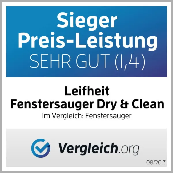 Mühelos strahlend saubere Fenster, ohne Streifen und ohne herabtropfendes Schmutzwasser: Der Leifheit Fenstersauger Dry & Clean sorgt im ganzen Haus für streifenfreie Flächen, ohne mühsames Nachpolieren. Fenster, Fliesen, Spiegel oder Duschkabine einwaschen und einfach mit dem Fenstersauger absaugen. Der Dry & Clean zeigt in jeder Lage seine volle Leistung: tropffrei saugt er sogar auf horizontalen Flächen und über Kopf das Wischwasser restlos von der Scheibe. Für eine lange Nutzung ohne Unterbrechung sorgt die Stand-By-Automatik: erst bei Kontakt mit der Fensterscheibe schaltet der Fenstersauger aus dem Stromsparmodus auf maximale Saugkraft und bietet hierdurch mit 38 Minuten eine extra lange Laufzeit, die zum Reinigen von über 100m² Fensterfläche ausreicht. So geht der Fensterputz garantiert in einem Aufwasch hin. Dank Click-System lässt sich der handliche Fenstersauger ganz einfach mit jedem der vielfältigen Leifheit Click-System-Stiele verlängern und ist damit auch für schwer erreichbare Flächen, wie hohe Fenster, Wintergärten oder Dachfenster die ideale Lösung bequem und ohne Leiter. Mit der separat erhältlichen schmalen Absaugdüse (17cm) ist der Fenstersauger Dry & Clean mit einem Handgriff sogar für schmale Scheiben oder Sprossenfenster einsatzbereit, für strahlend saubere Fenster im ganzen Haus rundum ein Leifheit Qualitätsprodukt made in Europe .