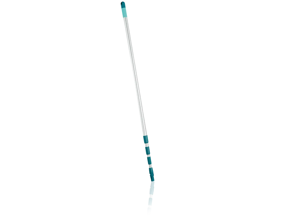 Ein Stiel für viele verschiedene Reinigungsgeräte: Die Easy-Click-Funktion des Leifheit Teleskopstiels macht es möglich. Einfach Reinigungskopf wechseln, einrasten, fertig. Der Stiel lässt sich von 130 cm bis auf stattliche 400 cm ausziehen. So können auch der Wintergarten und das Treppenhaus, Fassaden und hohe Altbauräume gefahrlos und ohne Leiter gereinigt werden. Mit Anti-Rutschkopf und 360° drehbarem Aufhängeloch.