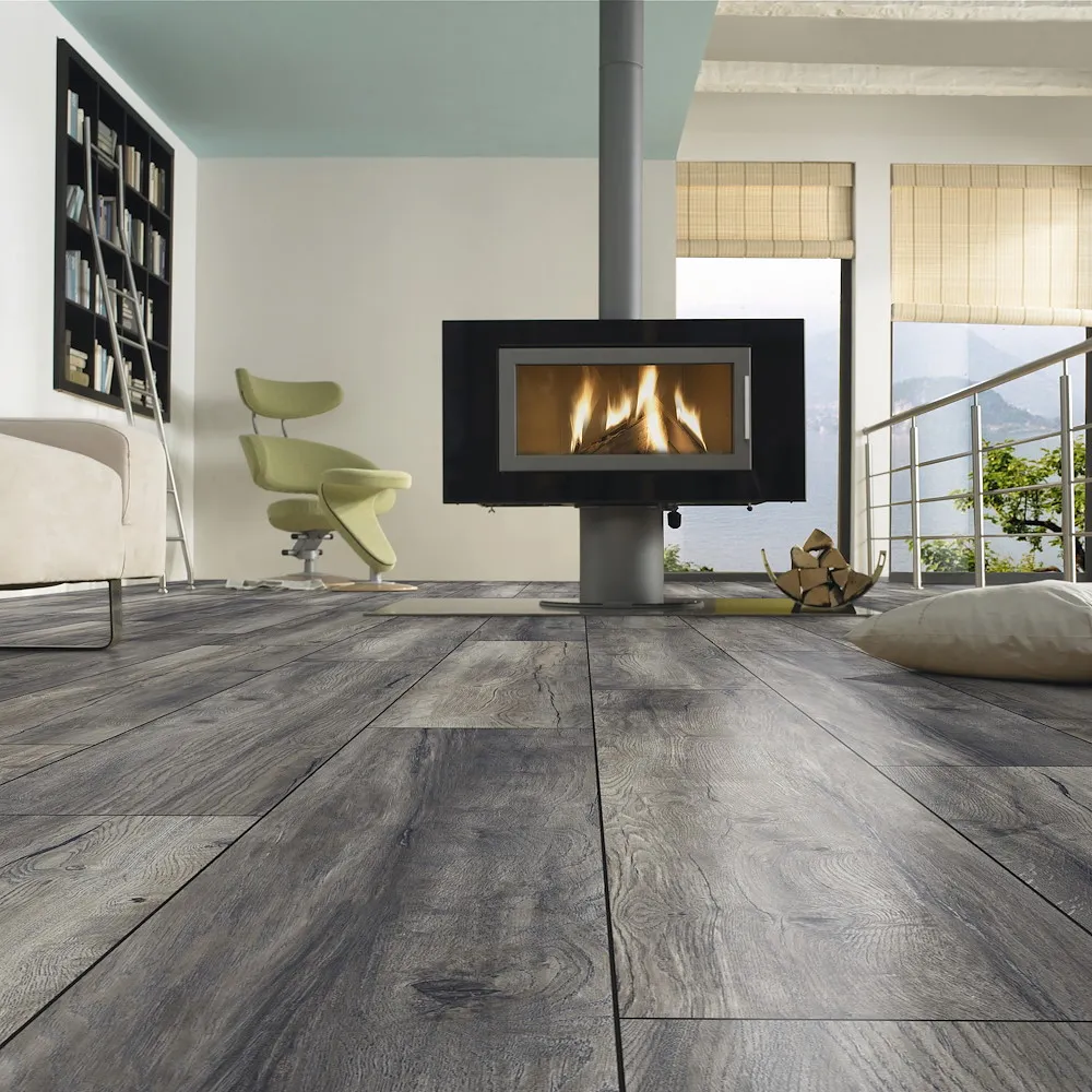Waldboden in den eigenen vier Wänden: Das Farbspiel von rauchigem Grau bis hin zu Granit-Grau verläuft über die breiten Dielen von Harbour Oak und lässt uns in die Natur eintauchen.