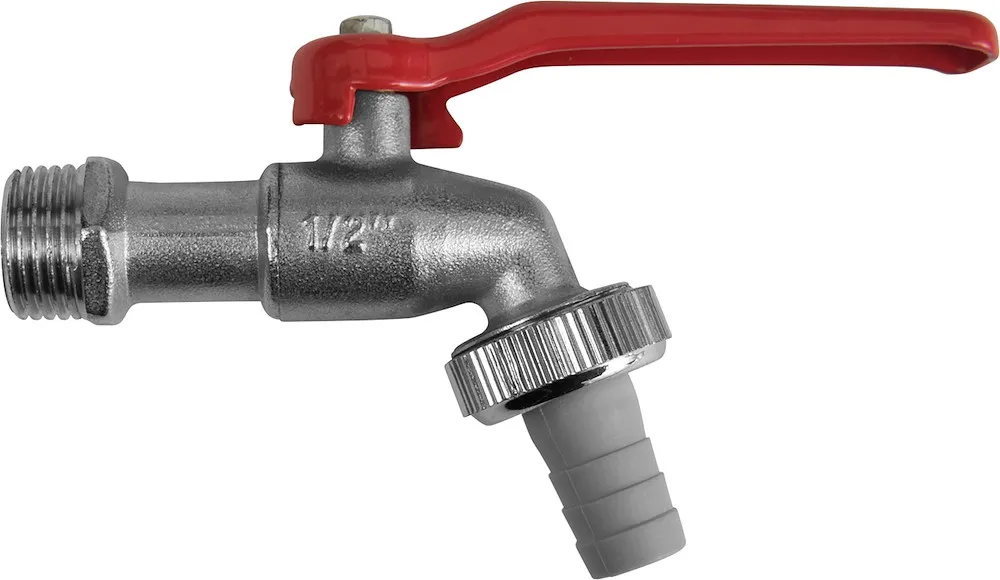 Messing, matt-verchromt '' Mit Hebel '' Inkl. Schlauchverschraubung'' 1/2'' AG, Schlauchverschraubung 3/4'' IG, Tülle Ø 14 mm