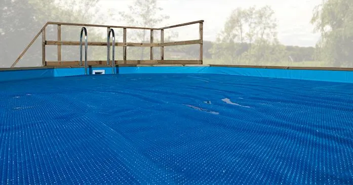 Mitihlfe der Wärmeplane für den Schwimmingpool 394 kann durch den Solar-Efekt eine zusätzliche Aufheizung des Beckens erreicht werden.UV-stabilisierte PE-Folie mit Luftkammern, in Farbe blau, durch Solareffekt kann eine zusätzliche Aufheizung des Beckenwassers erreicht werden Wärmeplane für Swimmingpool 594