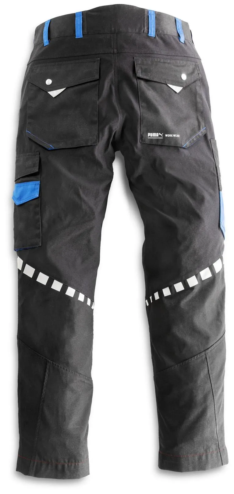 easy-long einfache Verlängerung der Hose, easy-active großer Stretcheinsatz im Gesäß sorgt für ultimative Bewegungsfreiheit, 3 Stretchelemente im Bund sorgen für besten Komfort, hochgezogener Bund hinten, 2 Schubtaschen, Handytasche, Cargotasche mit Klettverschluss und Druckknopf, Metertasche mit Messertasche und 2 Stiftfächern, 2 Gesäßtaschen mit Patte, Reißverschluss im Schlitz, vorgeformter, verstärkter Kniebereich aus Cordura, beanspruchte Stellen sind mit robustem Gewebe und Riegeln verstärkt, stylische Reflexdrucke, PUMA WORKWEAR Branding