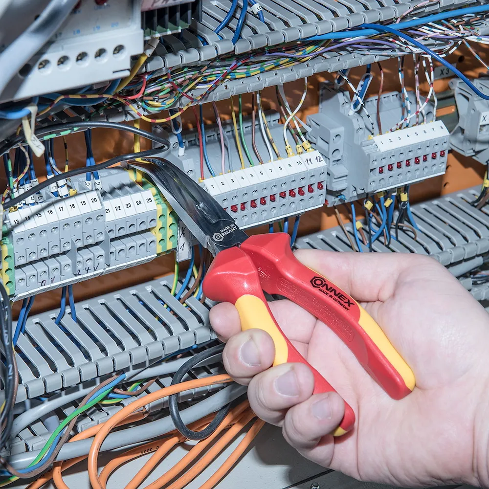 Flachrundzange VDE SB 200 mm, abgewinkelt, 2-K-Griff