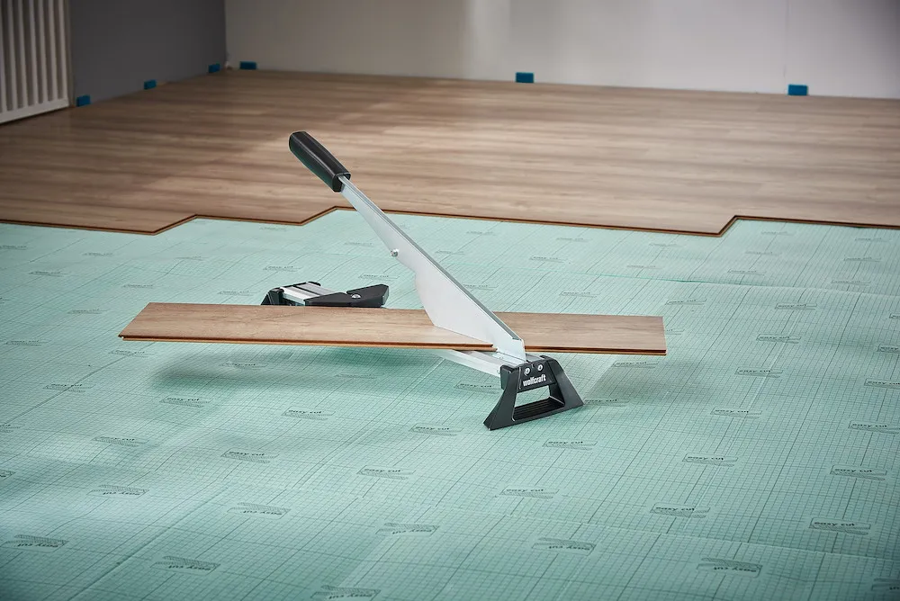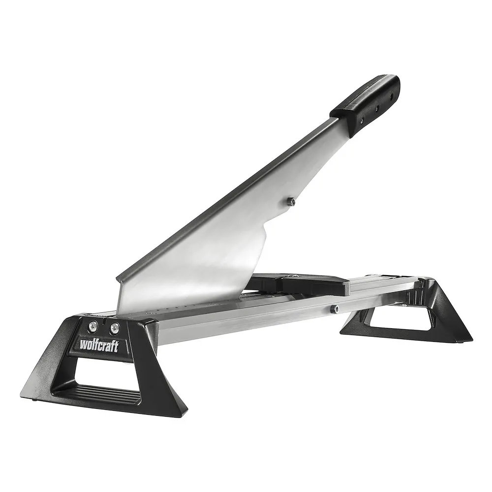 hochwertig gelaserte, glatte Klinge für exakte, saubere Schnittkanten und unversehrte Designschicht beim Schneiden von Laminat bis 8 mm Stärke und Laminat mit integrierter Trittschalldämmung bis 11 mm Stärke sichere Fixierung der Diele beim ersten Klingenkontakt und unbegrenzte Längsschnitte durch gezahnte Schneidleisten verstellbarer Anschlag für geführte 90°- oder 45°-Schnitte freie Winkelschnitte und Längsschnitte dank abnehmbarem Anschlag ergonomischer Griff, rutschhemmende Puffer und stabile Fußstützen für bestes Handling leicht und stabil dank hochwertiger Aluminiumausführung