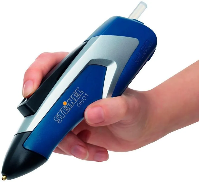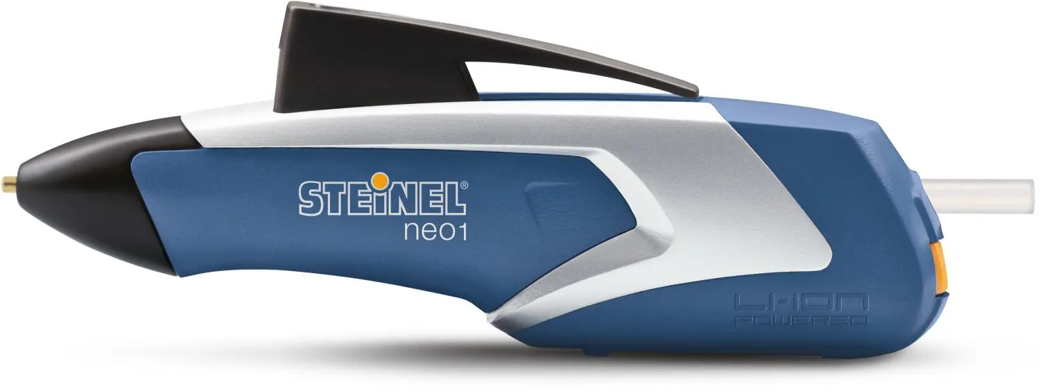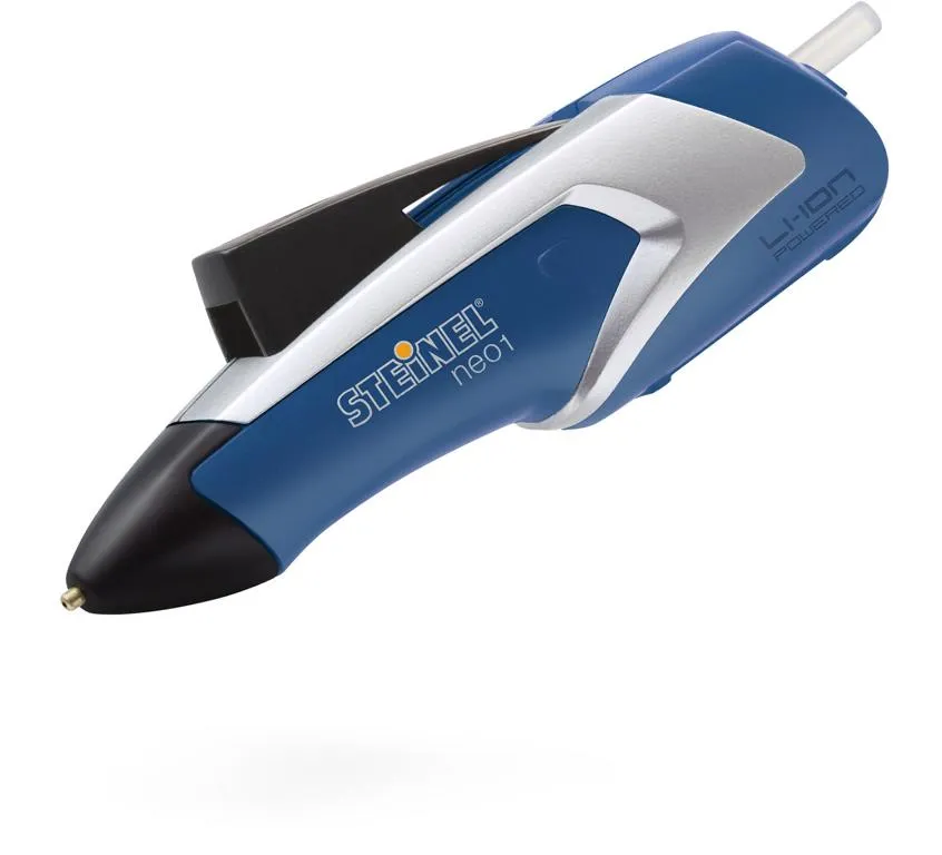 Kabelloser Alleskleber. Klein. Schnell. Punktgenau. Akku-Heißklebestift neo1, ideal für alle Klebeaufgaben im Haushalt, besonders leicht und handlich, kabelloses Arbeiten dank Li-Ion Akku, startklar in 15 sec.