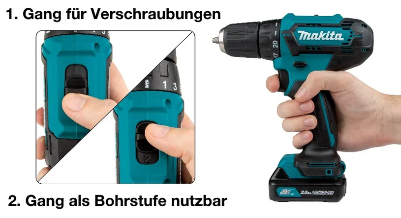 - 20-fache Drehmomenteinstellung plus Bohrstufe