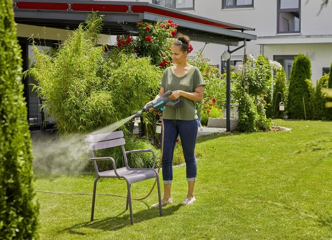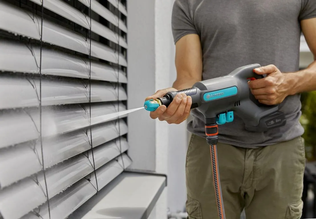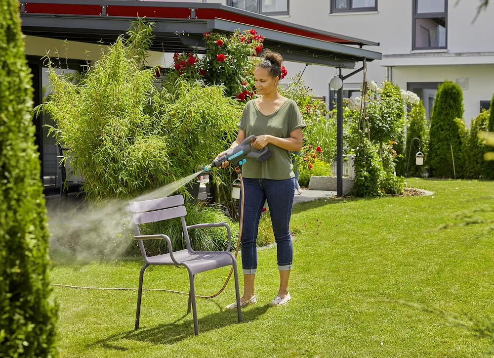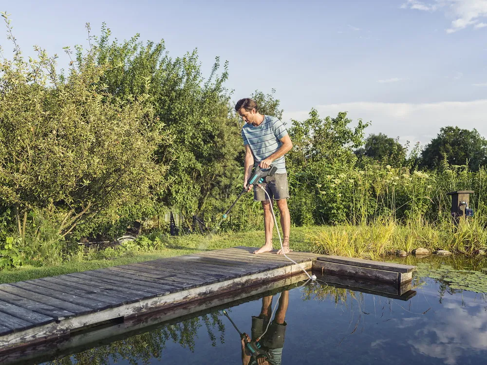 Der GARDENA Akku-Mitteldruckreiniger AquaClean 24/18V P4A ist ideal zur leistungsstarken, mobilen Reinigung rund um Haus und Garten, oder unterwegs. Er ist unabhängig von einer Stromquelle einsatzbereit. Ein fester Wasseranschluss ist auch nicht nötig. Ein Behälter mit Wasser oder eine alternative Wasserquelle, wie etwa ein Regenfass, genügen. Er ist selbstansaugend bis zu zwei Meter Tiefe und verfügt über drei Reinigungsstufen: 9, 14 und 24 bar. Mit 5 m Saugschlauch mit Filter, Schwimmer und Klammer, drei Reinigungsdüsen 0°, 15° und 45°, langer Lanze für Arbeiten in Bodennähe und kurzer Lanze für kurze Reichweiten. Die Energie liefert ein 18 V System Akku der Power for All Alliance, basierend auf der Technologie von Bosch. Dieser passt in eine Vielzahl anderer Gartengeräte von GARDENA, kann aber auch markenübergreifend mit zahlreichen weiteren Produkten aus der Allianz rund um das gesamte Zuhause verwendet werden (Akku und Ladegerät nicht im Lieferumfang enthalten).